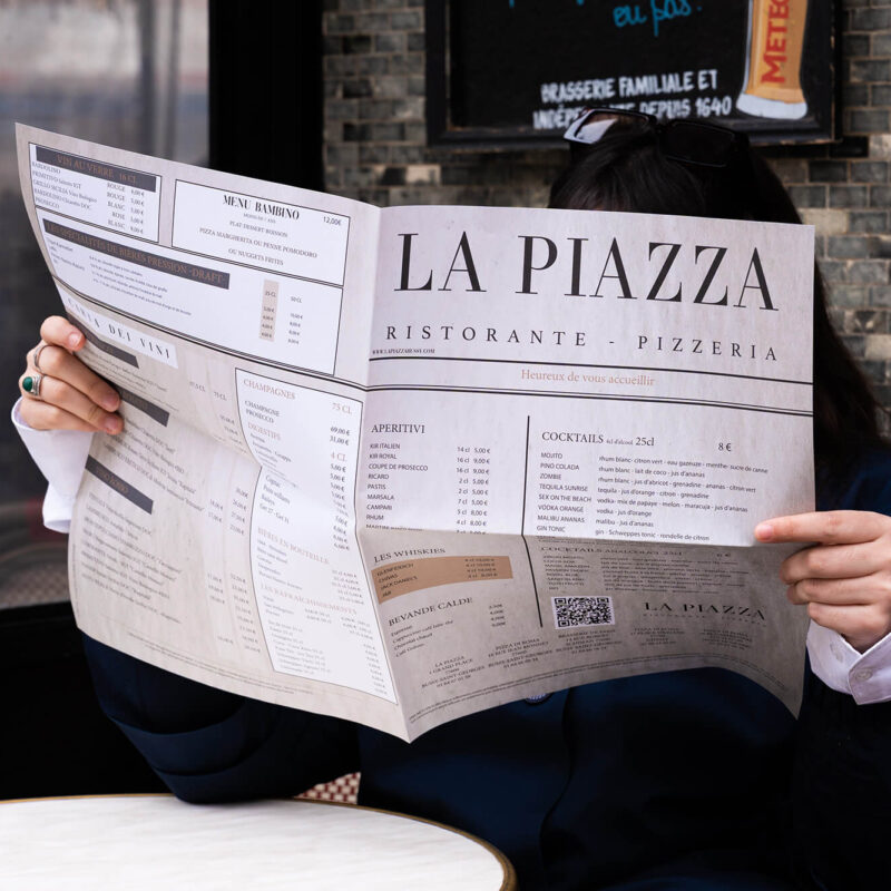 Chez resto-impression.com, notre mission est de vous accompagner dans vos projets avec un service réactif et des prix optimisés, sans compromis sur la qualité. Faites confiance à notre équipe de 20 professionnels passionnés pour sublimer l’image de votre établissement grâce à des impressions haut de gamme adaptées à vos besoins.