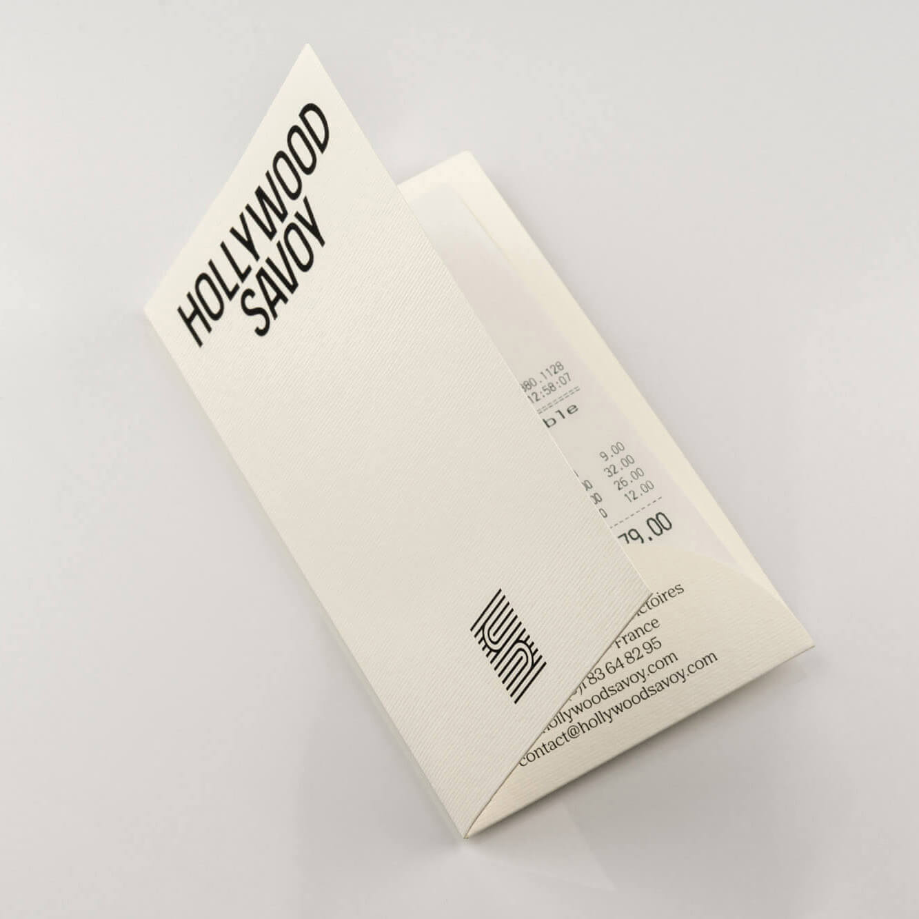 Disponible en plusieurs finitions haut de gamme, vous pouvez opter pour un papier texturé au toucher authentique ou pour un papier 350g pelliculé (brillant, mat ou mat avec vernis sélectif) pour un rendu plus lisse et résistant. Pratique, personnalisable et facile à manipuler, ce porte-addition est pensé pour s’adapter à votre univers visuel tout en résistant à une utilisation quotidienne.