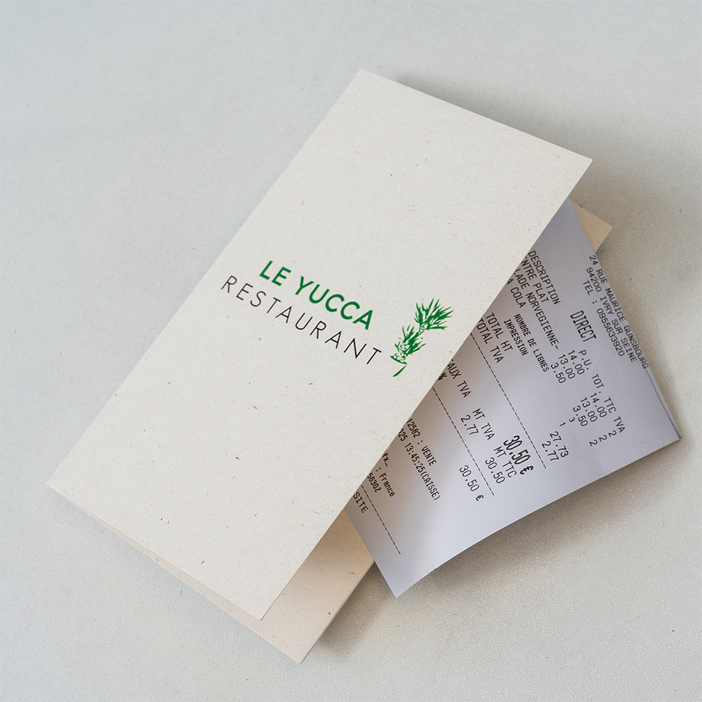Soignez chaque détail de votre service avec un porte-addition personnalisé en papier texturé ou pelliculé, conçu pour refléter l’image de votre établissement jusque dans les moindres attentions. Ce support, à la fois simple et raffiné, est idéal pour restaurants, brasseries, hôtels ou bars souhaitant offrir une présentation impeccable du règlement.
